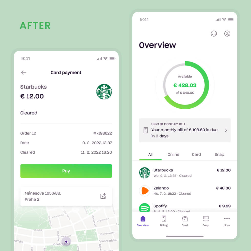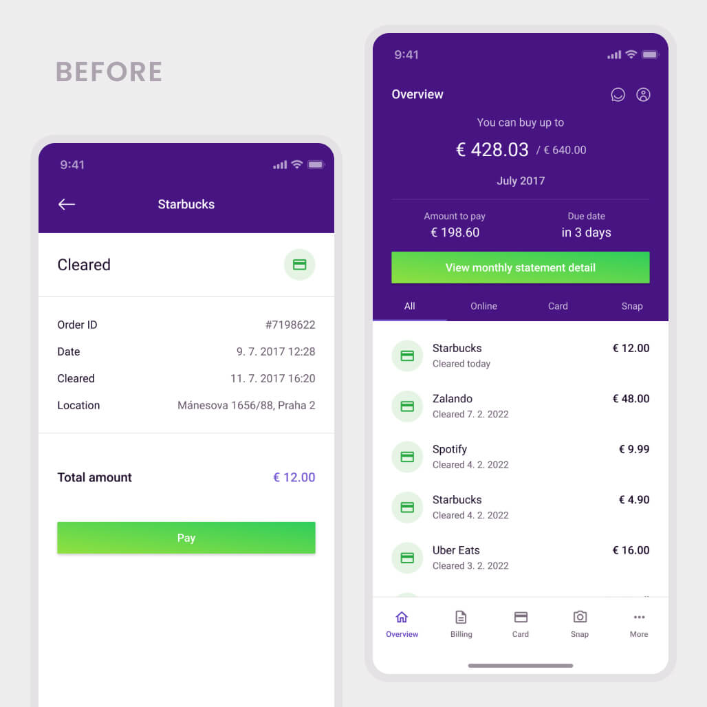 User interviews and early concept testing pointed to a clearer direction: credit front and centre, transactions easier to scan, and billing condensed into a single readable summary.