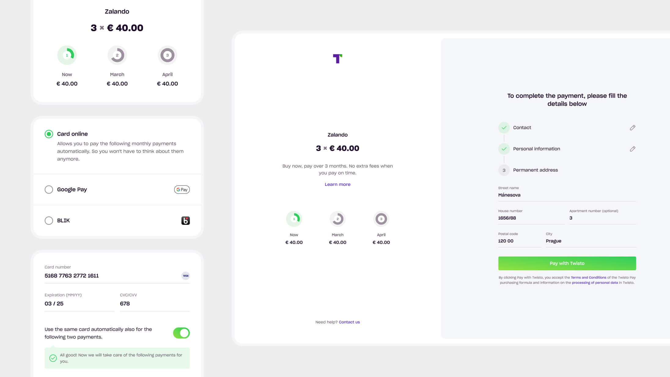 When I joined in 2017, Twisto was a single-market product with rough experience and no real design foundations. I was the first in-house product designer, working across four cross-functional product teams, owning product design end to end. By the time I left, Twisto had grown to 1M+ customers, 20K+ merchants, expanded into three countries, and been acquired by Zip for $100M.